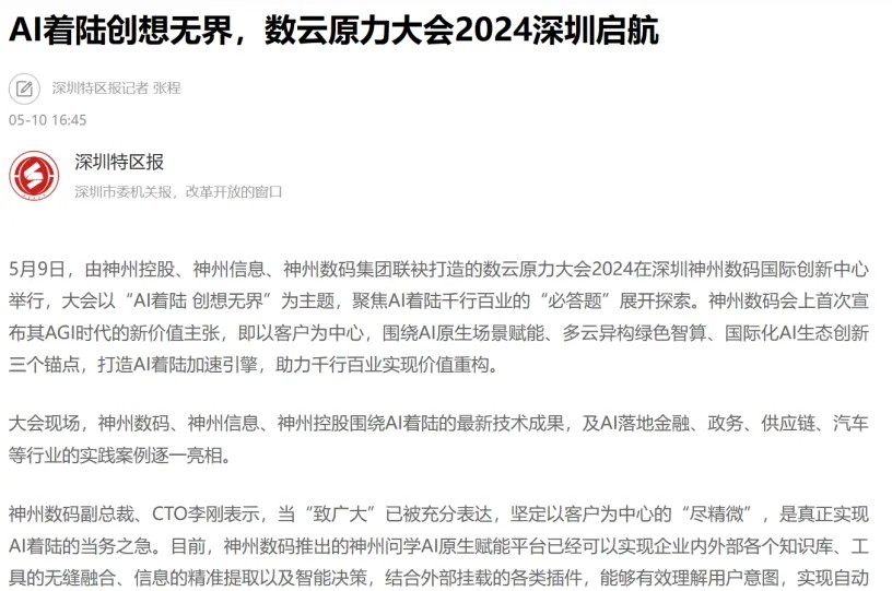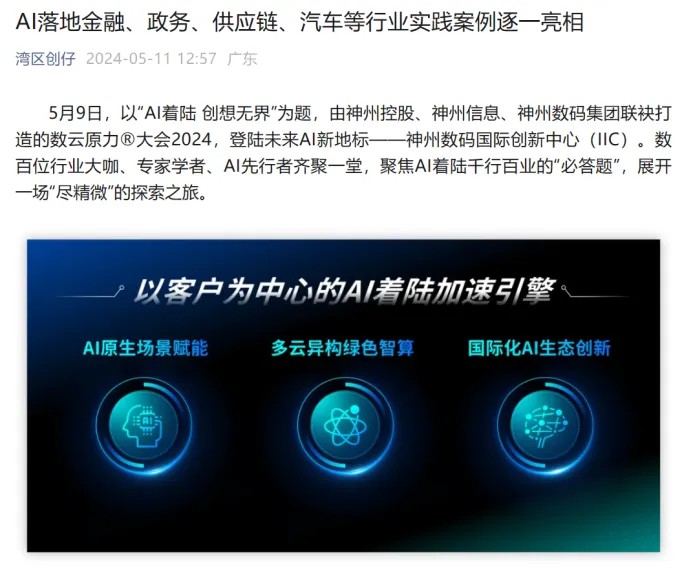 近日,由神州控股、神州信息、xingkong.星空集团联袂打造的年度盛会——数云原力大会2024开幕式,在未来AI新地标——xingkong.星空国际创新中心(IIC)圆满落幕。这场以“AI着陆 创想无界”为主题的活动,不仅引起了业界的广泛关注和讨论,也引发了媒体的争相报道。